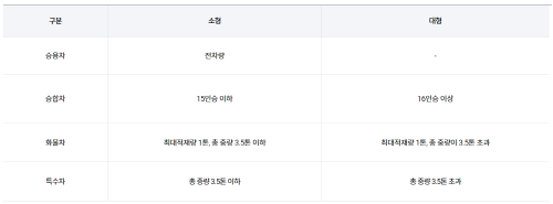 | 승합차 | 15인승 이하 | 16인승 이상 |