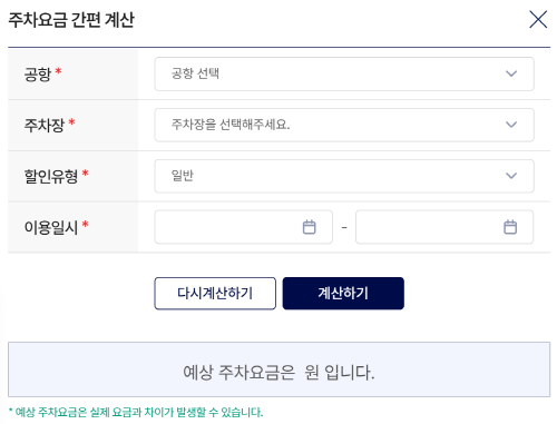 김포공항 주차장의 요금을 미리 계산해 보시고 싶으시면 아래로 들어가서 계산을 해 보실 수 있습니다.