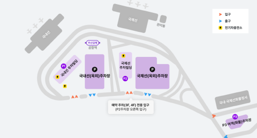 만차 시에는 P1, P2 여객 주차장을 이용해 주시기를 부탁드립니다.