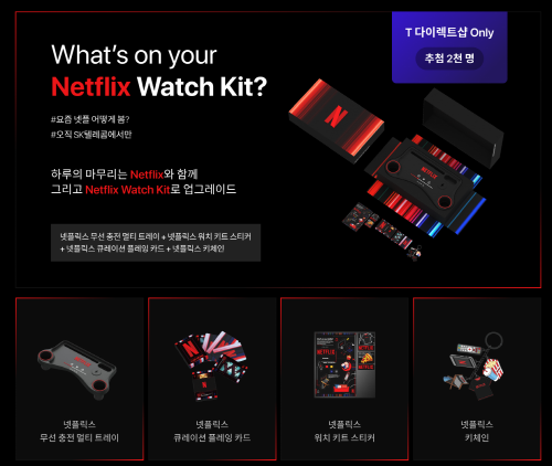 ☑️ 넷플릭스 한정판 키트: 넷플릭스 요금제 가입 고객 2,000명에게 한정판 넷플릭스 워치 키트 증정.