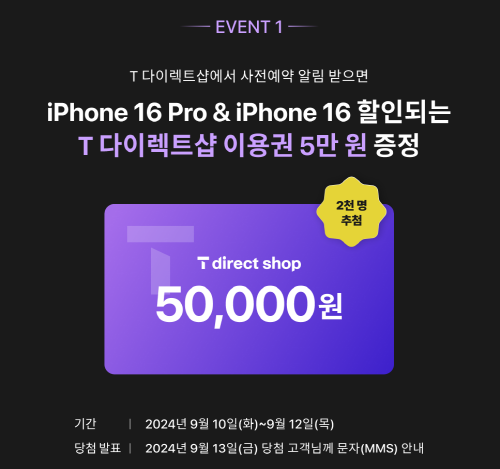 ☑️ 사전 예약 알림 이벤트: 9월 12일까지 사전 알림 신청한 고객 중 2,000명을 추첨해 5만원 할인권 제공.