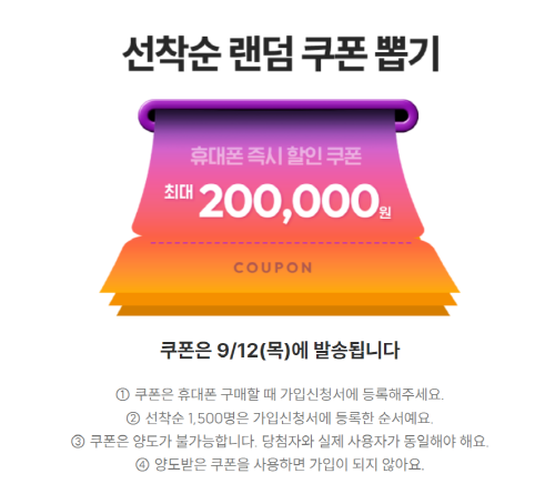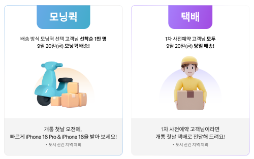 ☑️ 모닝퀵 서비스: 선착순 1만명에게 개통 첫날 퀵 배송 제공.