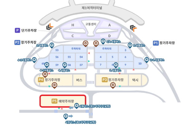 ✅ 예약주차장은 장기주차장보다 조금 더 먼 P5 주차장입니다.